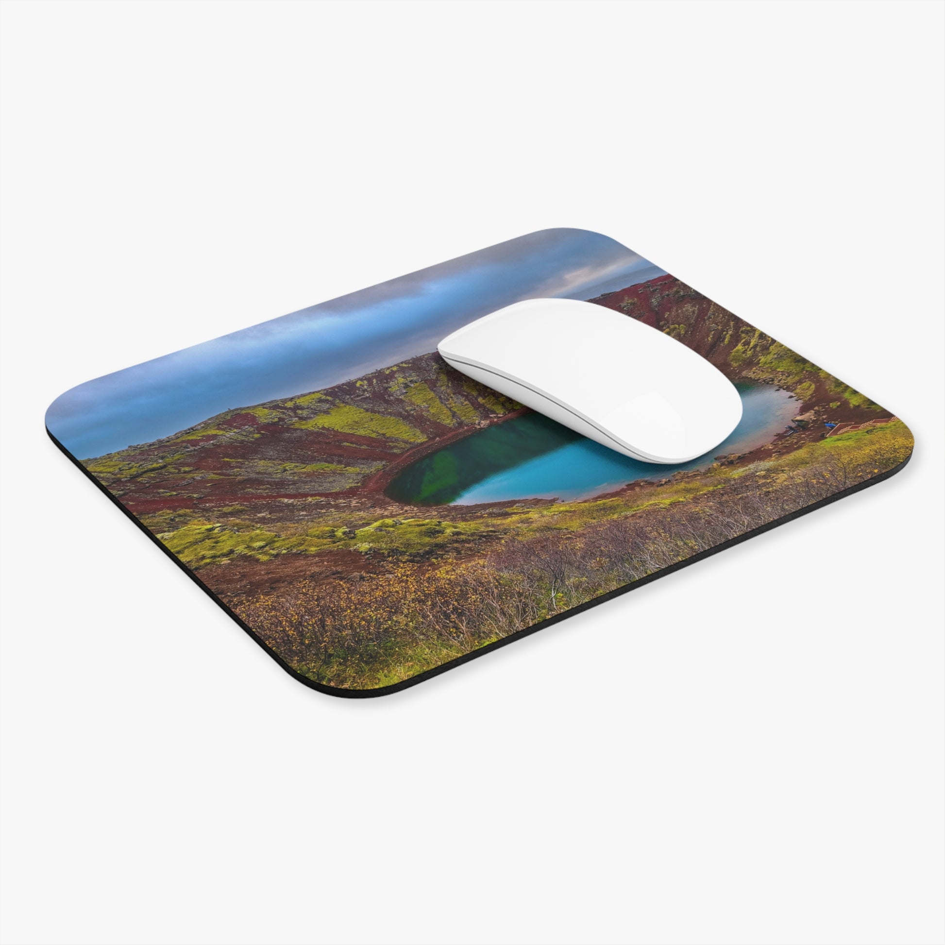 Add a splash of Iceland’s volcanic color to your workspace with this premium mousepad featuring the striking Kerið Crater. Nestled in the Golden Circle, Kerið is a 3,000-year-old volcanic caldera filled with a jewel-toned lake, its vivid turquoise water framed by red and green volcanic slopes—a reminder of Iceland’s fiery origins and ever-changing landscapes.